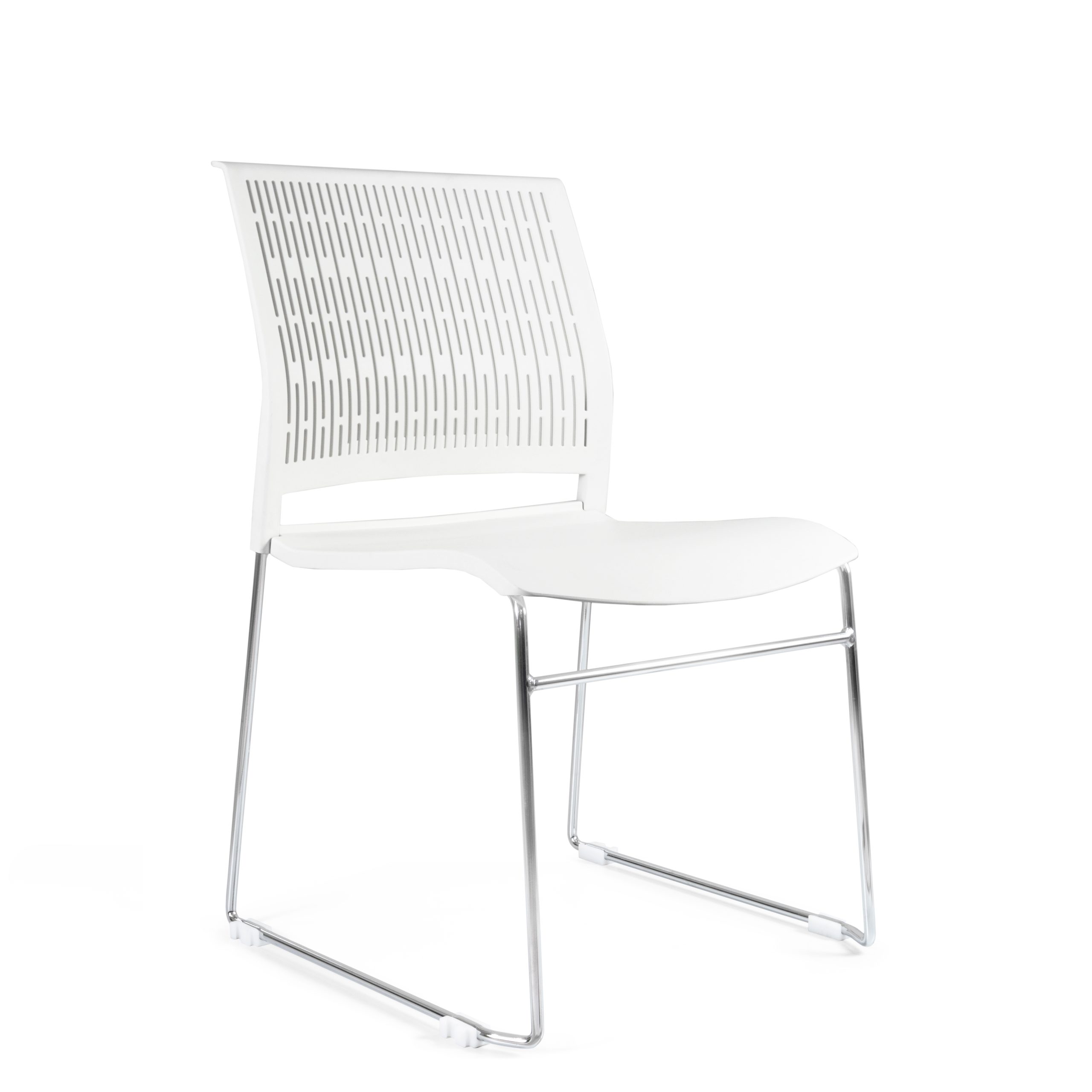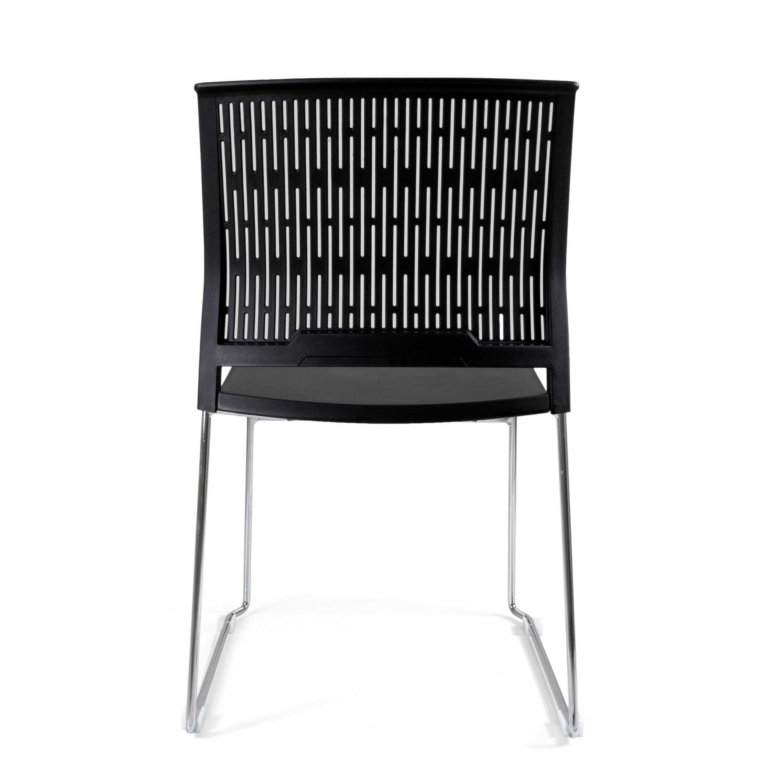 RESPALDO DE FORMA ERGONOMICA EN POLIPROPILENO Y FIBRA DE VIDRIO, CON PERFORACIONES DECORATIVAS. ASIENTO EN POLIPROPILENO Y FIBRA DE VIDRIO CON CURVATURA ERGONOMICA. ESTRUCTURA DE ACERO 12MM COLD ROLLED CON ACABADO CROMADO. DESLIZADORES EN POLIPROPILENO CON PINZA PARA SUJETAR ENTRE SILLAS. COLOR NEGRO, GRIS, BLANCO Y ROJO.