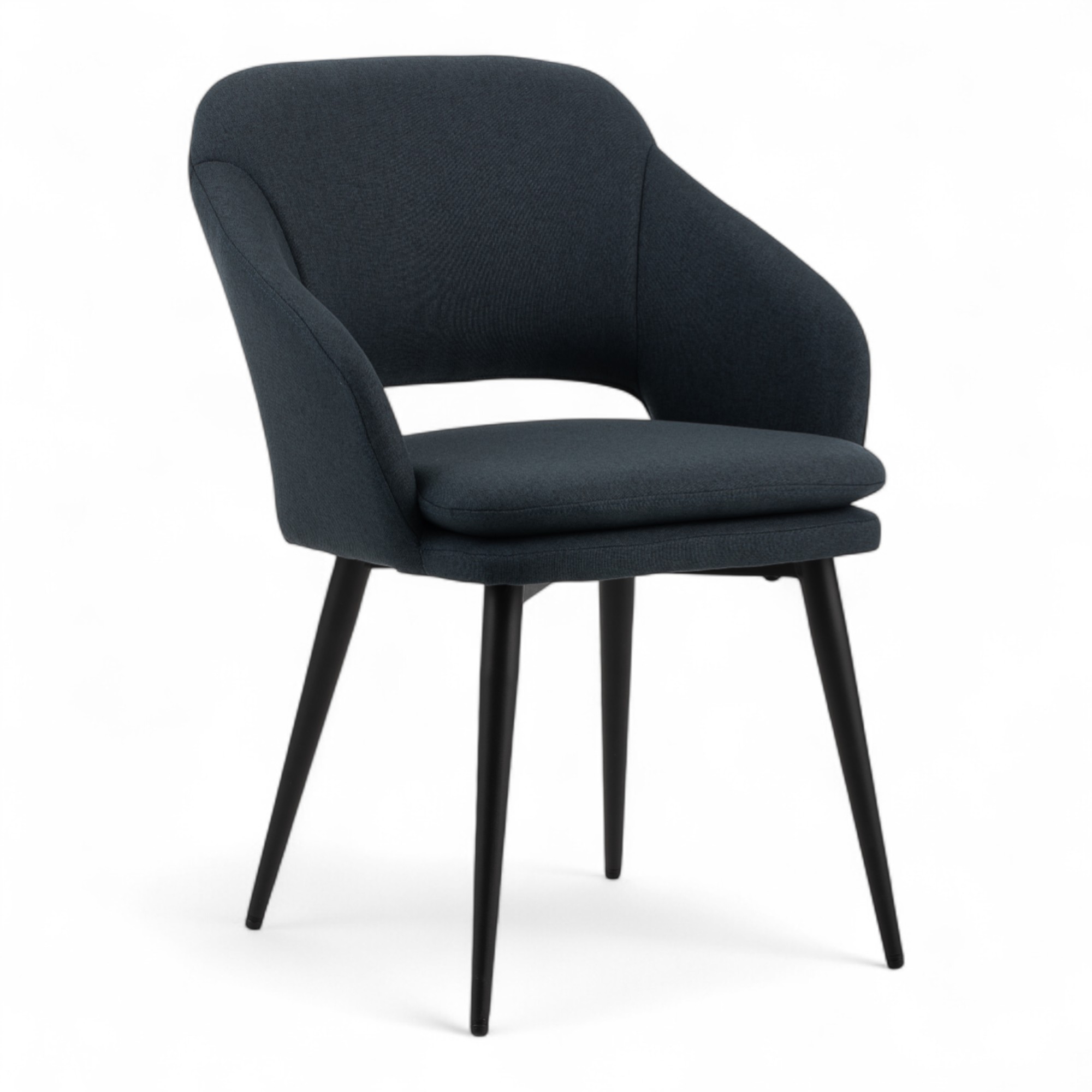 ASIENTO Y RESPLADO CON ESTRUCTURA INTERNA DE MADERA DE 12MM, EN UNA SOLA PIEZA; CON ESPUMA DE 7CM DE ASIENTO Y BRAZOS CON FORMA ERGONOMICA. BASE DE 4 PATAS DE ACERO DE 1.2MM DE ESPESOR, CON ACABADO EN PINTURA ELECTROSTATICA COLOR NEGRO Y NIVELADORES. COLOR: GRIS ACERO, GRIS PLATA, AZUL MEDIANOCHE